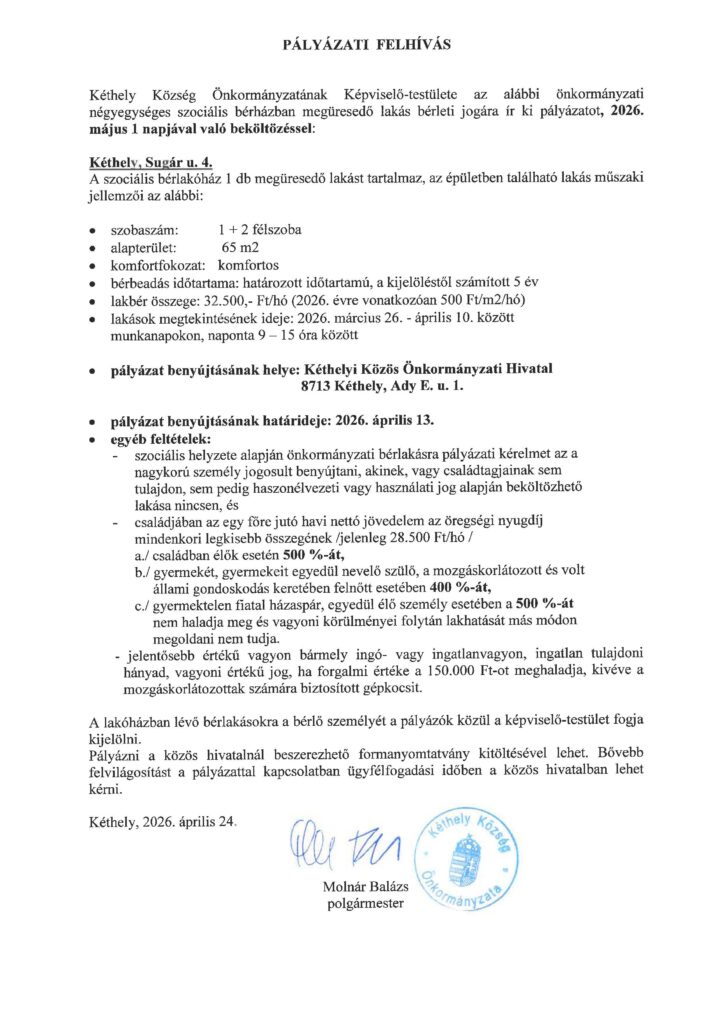 Kezdőlap - Nyomtatványok - Hírek - Pályázati Felhívás! Szociális bérlakás!
