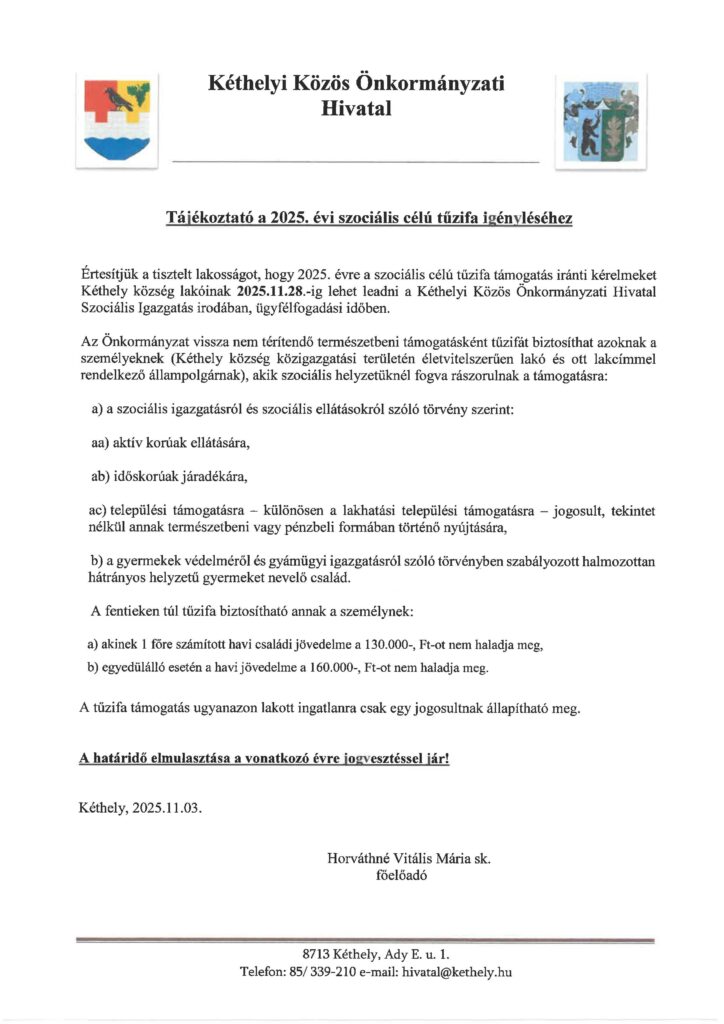 Kezdőlap - Nyomtatványok - Hírek - Tájékoztató! a 2025. évi szociális célú tűzifa igényléséhez