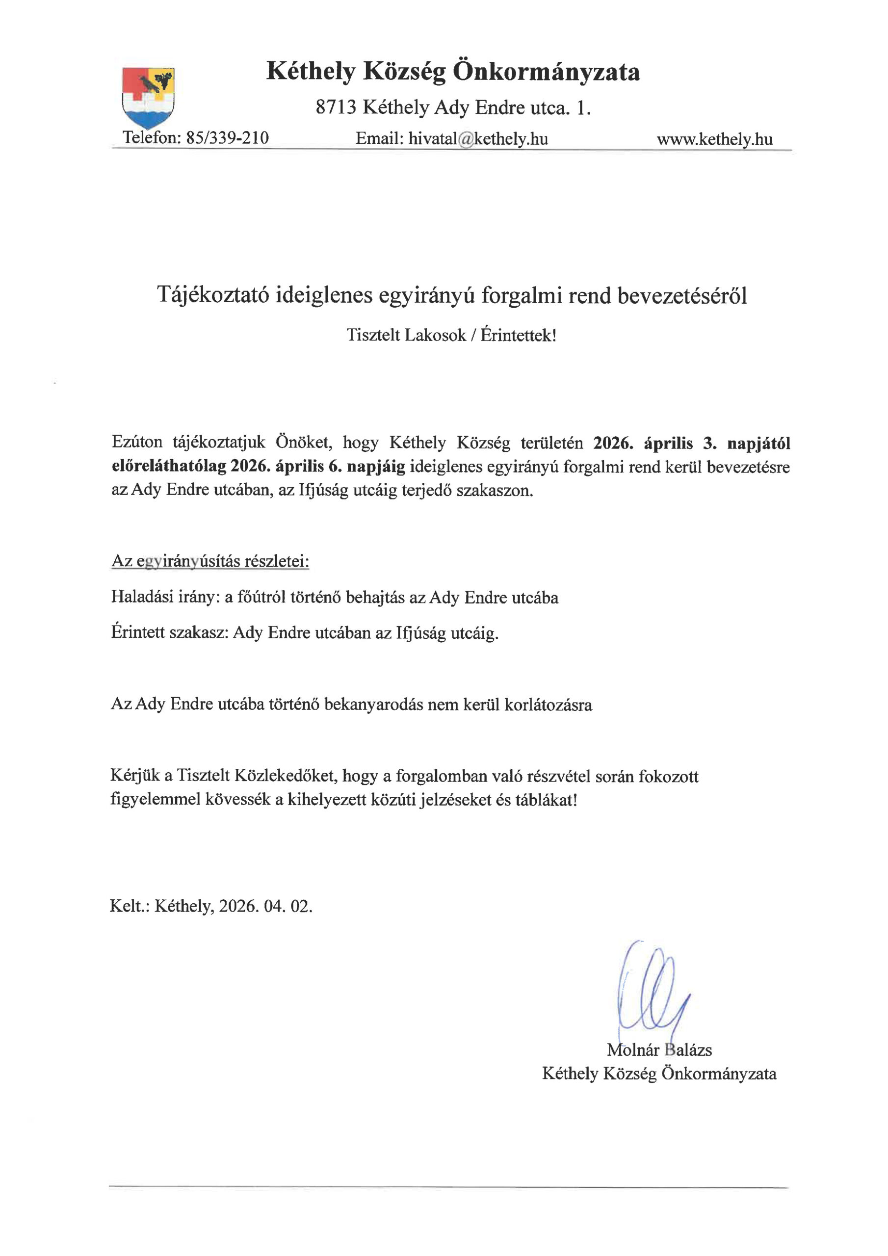 Kezdőlap - Nyomtatványok - Hírek - Tájékoztató ideiglenes egyirányú forgalmi rend bevezetéséről