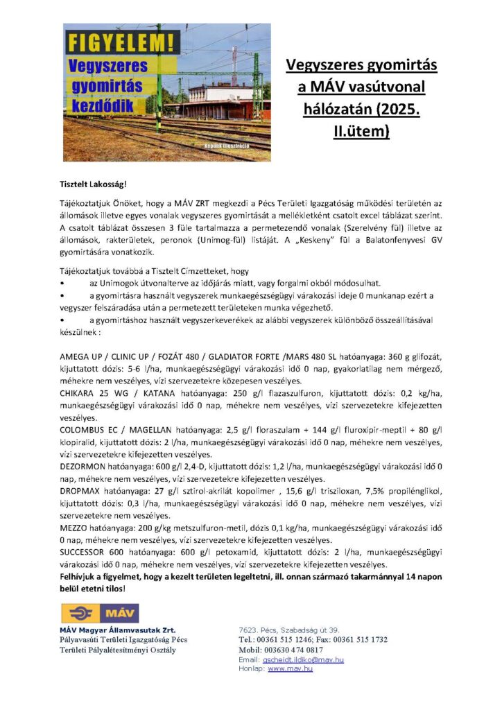 Kezdőlap - Nyomtatványok - Hírek - Vegyszeres gyomirtás a MÁV vasútvonal hálózatán II. ütem